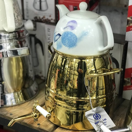 کتری قوری هرمی قیطاسی 5.5لیتری شیردار کف چدن طلایی مدل8852
