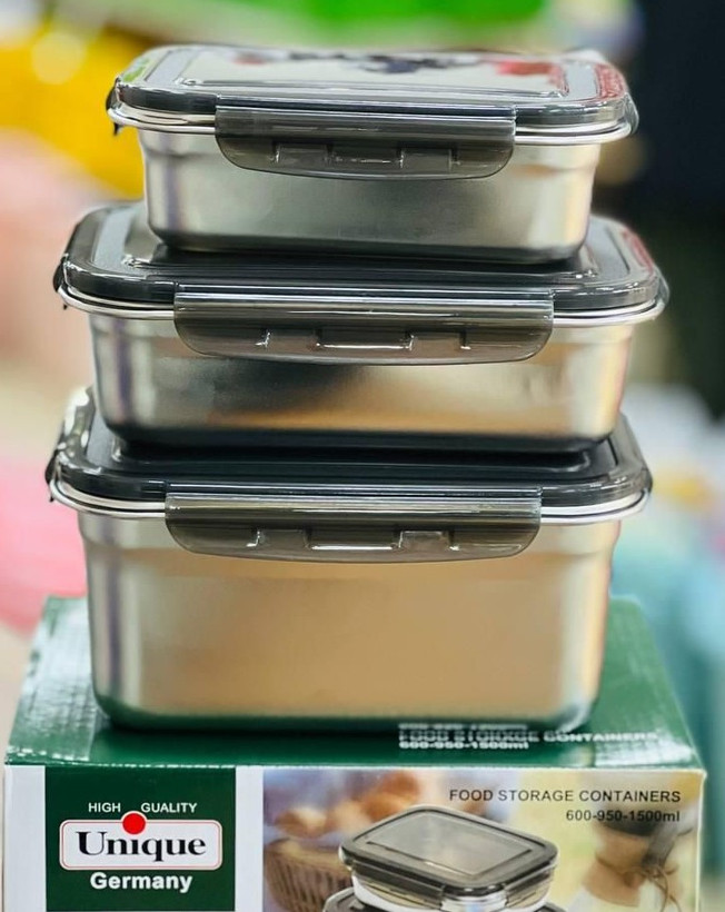 ظرف غذا مربعی یونیک بسته 3 عددی استیل مدل 19194
